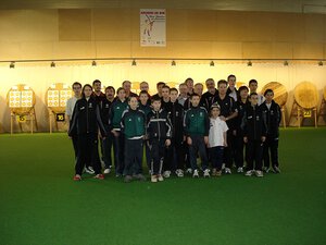 Beim zweiten Bundesendkampf im Schulvergleich Bogen in Korbach (Hessen) musste das Team vom Kopernikusgymnasium ersatzgeschwächt antreten. Lisa Lenk, Philipp Laux und Felix Ruß konnten grippekrank nicht antreten. So fiel die Aufgabe, den vierten Platz aus dem bundesweiten Vorkampf zu verteidigen oder gar zu verbessern, Marcel Leutnitz sowie Martin und Anna Grünefeld zu. Zunächst stand die Qualifikation auf dem Programm. Die drei Schützen schossen im oberen Bereich Ihrer Möglichkeiten. Die 1445 Ringe reichten jedoch nur zum siebten Platz. Dieser bedeutete, dass die Mannschaft am Nachmittag dann im Viertelfinale gegen den Titelverteidiger, die Werner-Seelenbinder-Gesamtschule vom Bundesleistungszentrum in Berlin, antreten musste, die in der Qualifikation den zweiten Platz belegt hatte. Nach der ersten Passe war es mit 79:81 noch recht eng. Besonders Anna Grünefeld überraschte mit einer soliden Leistung. Am Ende fiel die Niederlage mit 224:249 jedoch erwartet deutlich aus. Da die anderen Verlierer der Viertelfinalbegegnungen 225 bzw. 226 Ringe erzielten, blieb es am Ende beim siebten Platz aus dem Vorkampf. Den Titel der besten deutschen Bogen-Schulmannschaft sicherte sich mit den letzten Pfeilen in einem äußerst spannend geführten Finale das Limes-Gymnasium aus Welzheim gegen die Mannschaft der Werner-Seelenbinder-Gesamtschule. In der separat durchgeführten Einzelwertung konnte Marcel mit seinen 544 Ringen den 3. Platz in der Jugendklasse erringen. | ||||||||||